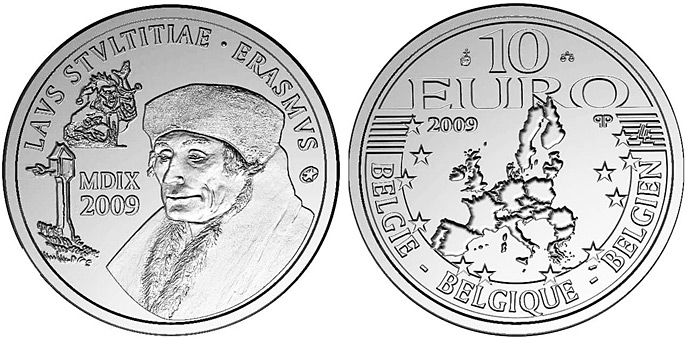 V roce 1509 sepsal holandský myslitel Erasmus Rotterdamský svůj nejznámější spis Chvála bláznivosti (Encomium moriae). Belgie k tomuto výročí vydala zlatou a stříbrnou pamětní eurominci. Autorem návrhu je Luc Luyc.