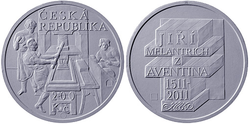 ČNB představila vítězný návrh stříbrné pamětní mince k 500. výročí narození významného renesančního nakladatele a tiskaře Jiřího Melantricha z Aventina. Autor vítězného návrhu je Jan Smrž. Předpokládaný termín emise mince je 15. června 2011.