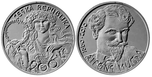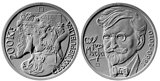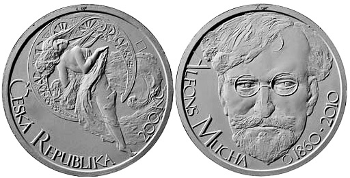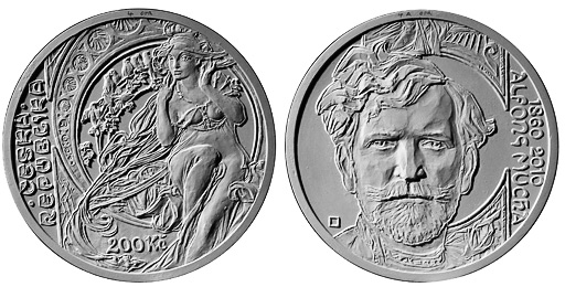 ČNB představila 2. července vítězné návrhy pamětní stříbrné mince ke 150. výročí narození nejvýznamnějšího českého secesního malíře Alfonse Muchy. První cenu a doporučení k realizaci získal návrh akademického sochaře Ivana Řeháka.