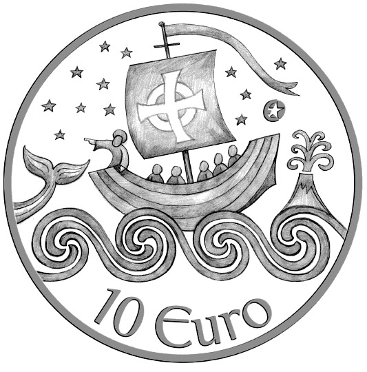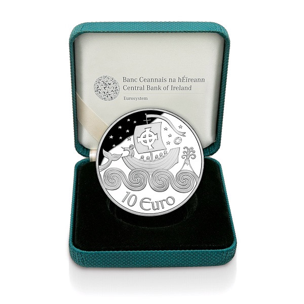 Irsko vydá 15. února stříbrnou desetieurovku v proof kvalitě, která připomene sv. Brendana - irského mořeplavce a průzkumníka.
