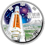 Na minci je vyobrazena raketa H-II, první raketa vyrobená použitím japonských domácích technologií.