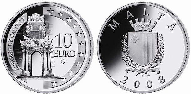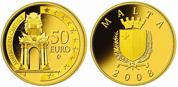 V polovině září 2008 však Malta vydá dvě pamětní euro mince s motivem Auberge de Castille.