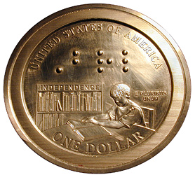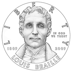 Při příležitosti výročního sjezdu The National Federation of the Blind konané 2. července 2008 v Dallasu odhalil ředitel US Mint Ed Moy design nové stříbrné pamětní mince pro rok 2009. Stříbrný dolar připomene 200. výročí narození Louise Braillea (1809-1852), vynálezce Braillova písma, systému psaní pro nevidomé. Mince vyjde v nákladu 400 000 kusů a z každé prodané mince půjde 10 dolarů ve prospěch The National Federation of the Blind.