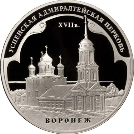3 rubly: Stříbrná proof mince The Assumption Admiralty Church in the City of Voronezh