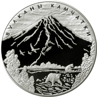 Dále tři mince zobrazující sopky Kamčatky ze série Russia in the UNESCO World Cultural and Natural Heritage. A dvě oběžné mince doplňující série