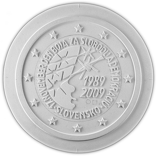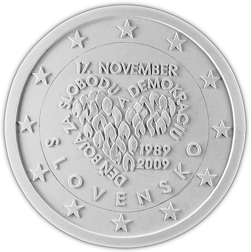 Národná banka Slovenska vyhlásila v septembri 2008 verejnú anonymnú súťaž na výtvarný návrh pamätnej mince v nominálnej hodnote 2 eurá k 20. výročiu udalostí zo 17. novembra 1989, ktoré sa stali významným medzníkom vo vývine Česko-Slovenska a znamenali začiatok demokratickej revolúcie. Vzhľadom na ich význam sa 17. november v roku 2001 stal štátnym sviatkom Slovenskej republiky a bol vyhlásený za Deň boja za slobodu a demokraciu. Pamätná minca bude mať rovnaké parametre ako bežná obehová dvojeurová minca, je určená pre obeh a bude ňou možné platiť vo všetkých krajinách eurozóny.